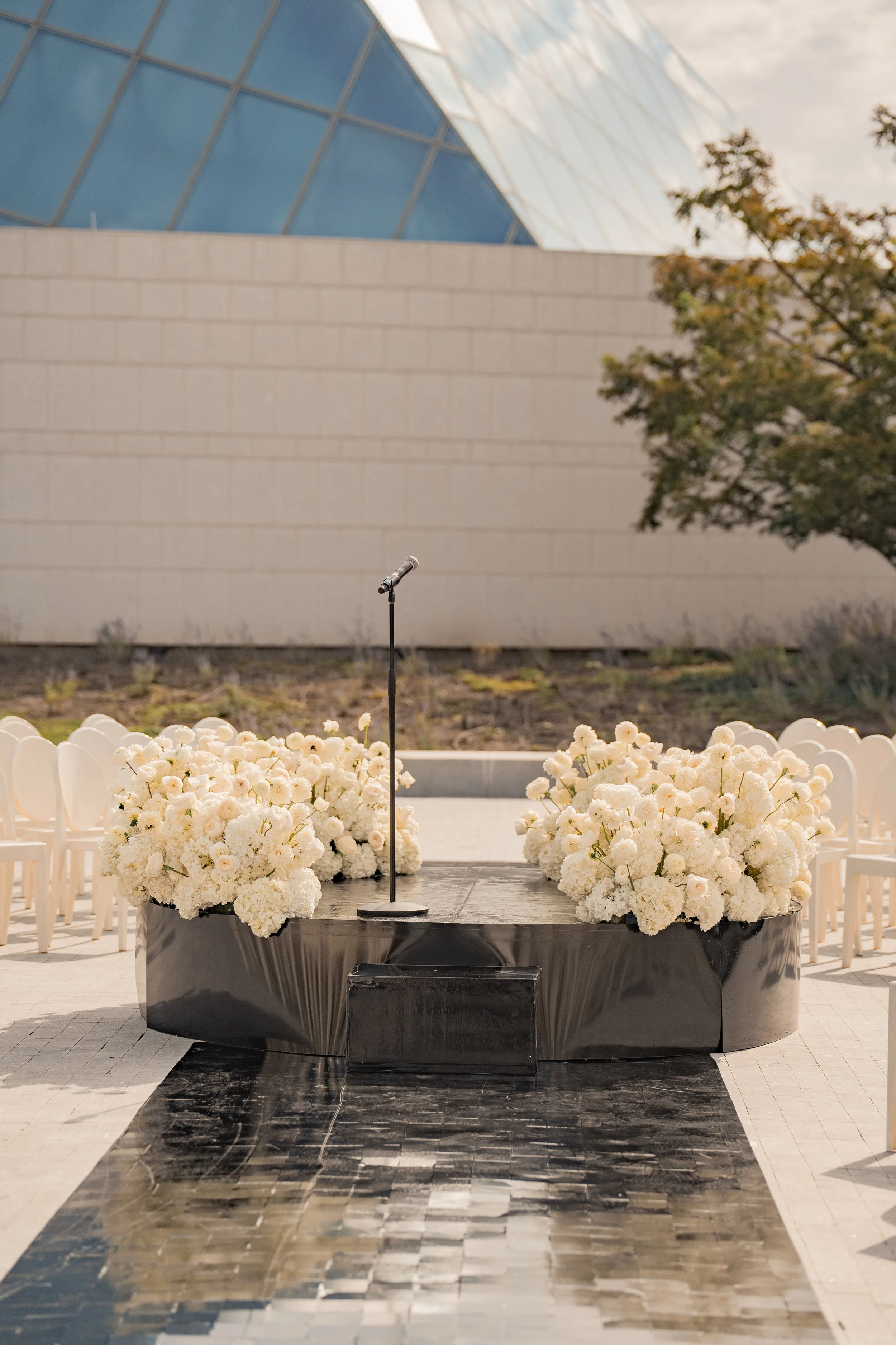 This approach allows for refined, luxury wedding decor that complements the museum’s design.