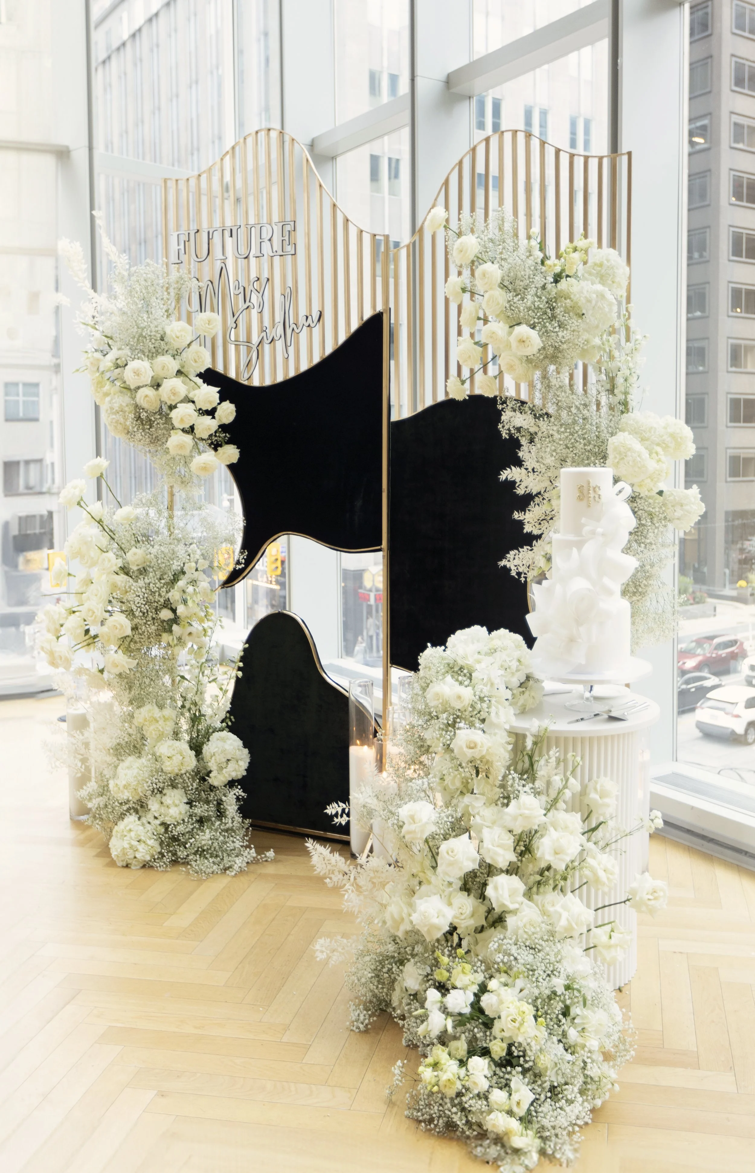 When it comes to celebrating life’s most meaningful moments, your bridal shower should feel like an experience—elegant, personal, and unforgettable. Recently, we had the honour of designing a luxury bridal shower at Shangri-La Toronto for none other than Sonia, the founder of Chic Events by Sonia. The result? A breathtaking display of white florals, soft candlelight, and statement backdrops that brought the phrase “bridal shower goals” to life.