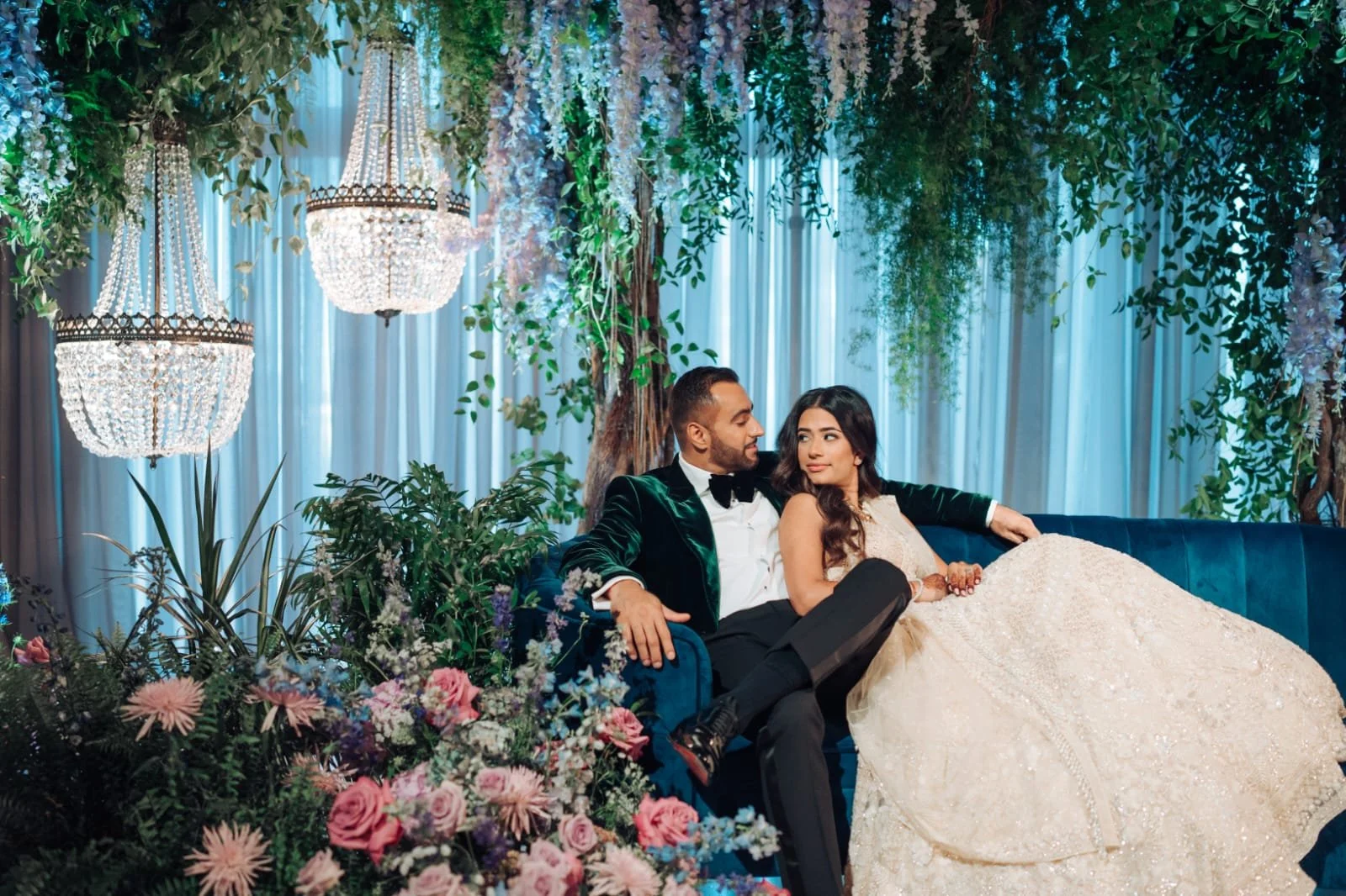 Suspended installations — floral clouds that hover above tables or dance floors — are one of the defining trends of modern luxury design.