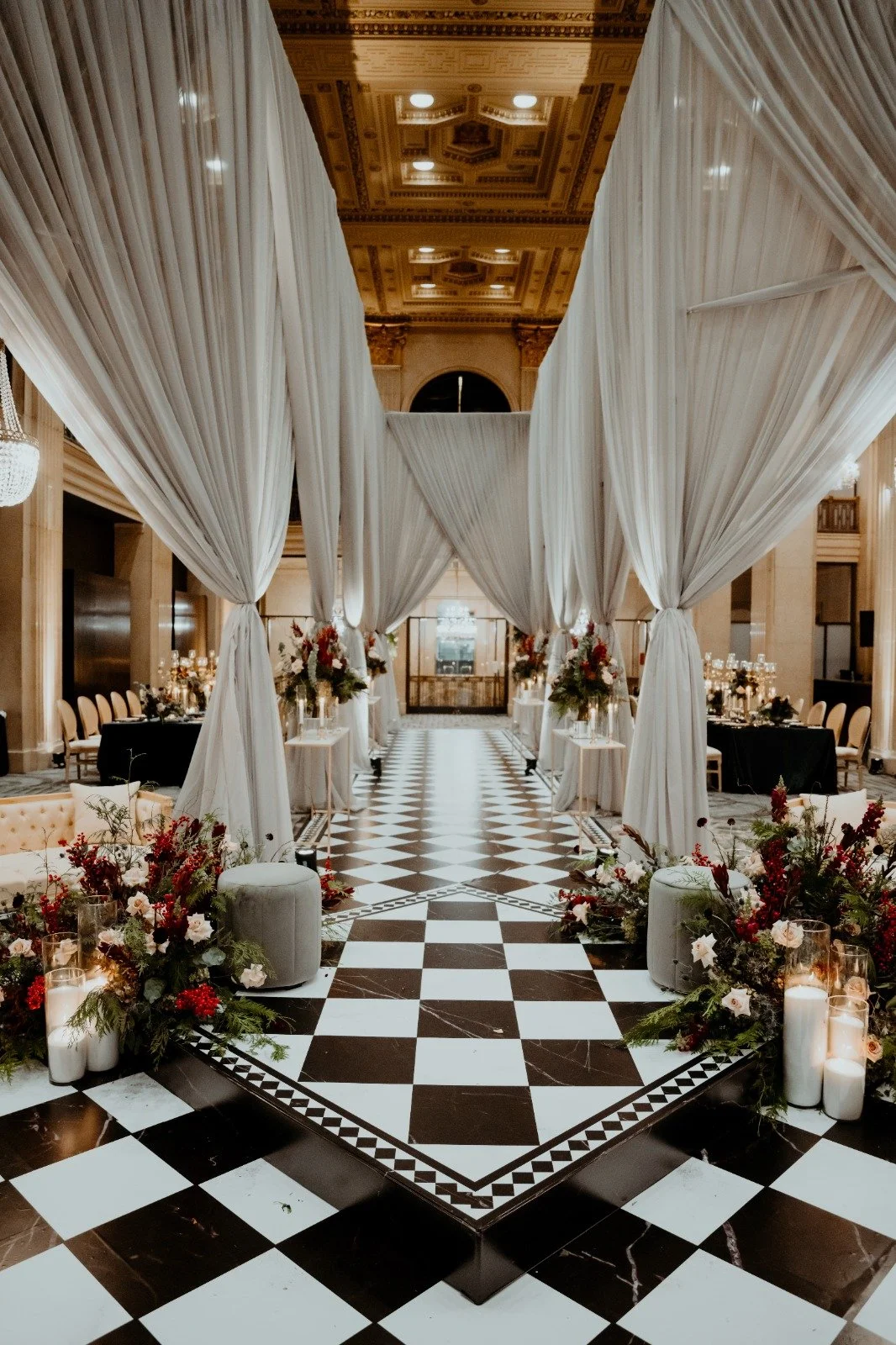 We’ve had the pleasure of designing here before and after the renovation — and the transformation is stunning. The newly renovated ballroom and lobby feature elevated finishes, high ceilings, and soft, modern tones that make any design palette feel luxurious.